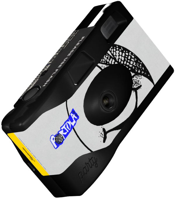 Give away custom branded Party! cameras to your audience.
